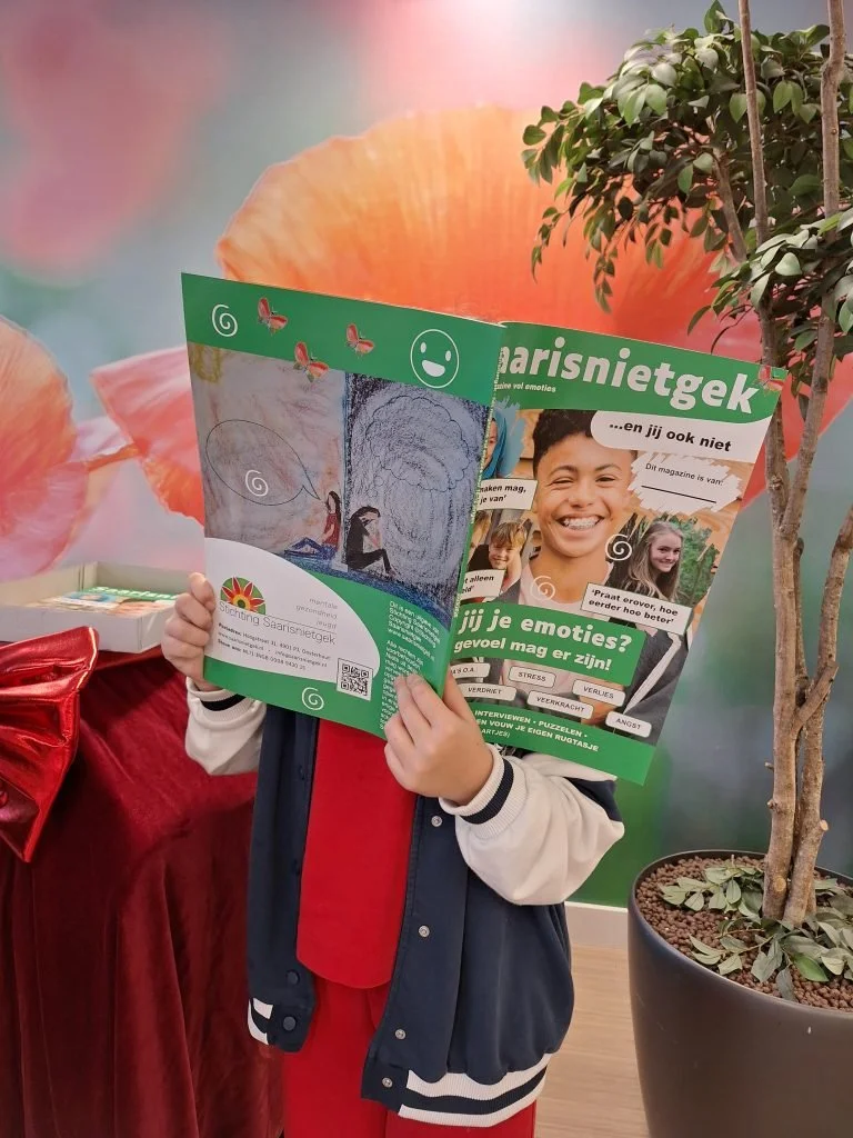 Het eenmalig magazine van anbi-stichting Saarisnietgek gaat over mentale gezondheid van kinderen 10-12 jaar en richt zich op preventie door kinderen handvatten te geven over hun emoties te praten en informatie hoe ze met de emoties kunnen omgaan. Met name de ervaringen van leeftijdgenoten slaan aan bij de kinderen: ‘ik ben niet alleen’, ‘een ander voelt het ook zo’.